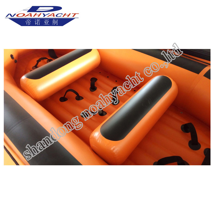 帝諾亞舸漂流船專門為白水級別設計,結實、耐用。浮筒底部額外貼一層PVC料皮加固。自排水充氣拉筋地板設計,配套安全閥,保證安全。